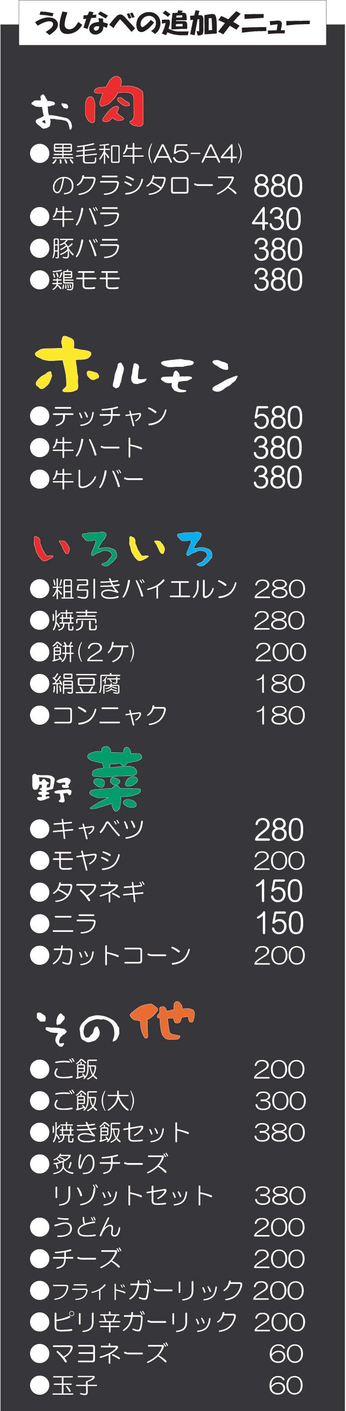 只今、各種うしなべが肉2倍盛り!